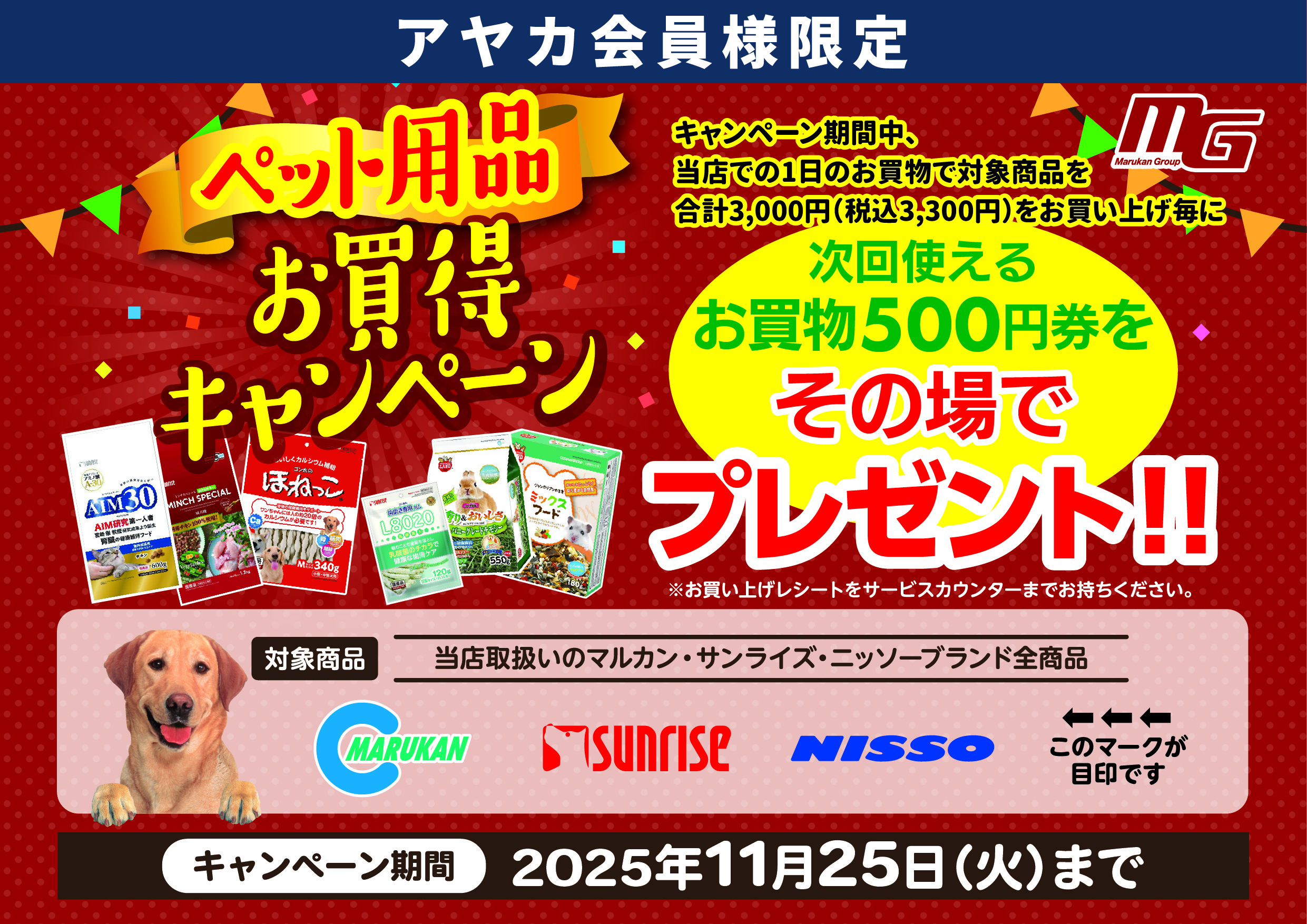 期間中に各店での1日のお買物で対象商品を合計3,000円(税込3,300円)お買上げ毎に、