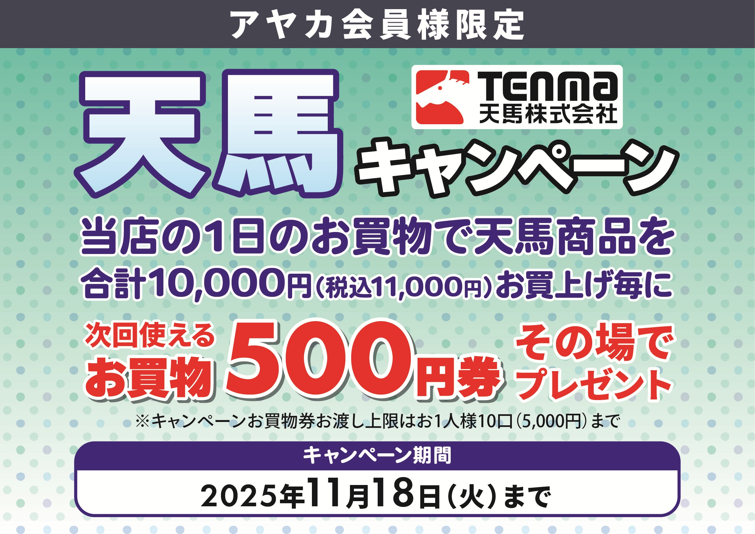 ※キャンペーンお買物券お渡し上限はお1人様10口(5,000円)まで